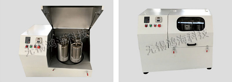 行星式球磨機(jī)是在一轉(zhuǎn)盤上裝有四個球磨罐,當(dāng)轉(zhuǎn)盤轉(zhuǎn)動時,球磨罐隨著轉(zhuǎn)盤轉(zhuǎn)動,同時球磨罐在齒輪的帶動下自身由中心軸帶動作行星運動,罐中磨球在高速運動中做不規(guī)則運動產(chǎn)生沖擊、剪切、研磨力達(dá)到研磨和混和樣品的目的。行星式球磨機(jī)能用干、濕兩種方法粉碎和混和粒度不同,材料各異的產(chǎn)品,效率高、效能大、研磨產(chǎn)品粒度可小至0.1微米(即1.0×10-4mm)甚至納米。