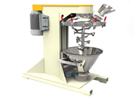產(chǎn)品通過錐形混合腔頂部投入,投料范圍在30%-100%之間,設(shè)備中間有一個頂部驅(qū)動的高速轉(zhuǎn)軸,因此便去除了在產(chǎn)品區(qū)域的密封設(shè)計以及軸承。在軸上有緊貼內(nèi)壁的槳式混合原件。通過高速旋轉(zhuǎn)的攪拌槳和錐形內(nèi)倉的共同作用將產(chǎn)品由底部帶至混合腔的上部。當產(chǎn)品達到頂部的時候又重新回落到混合倉中心,如此的產(chǎn)品的方式形成了一種快速的宏觀混合。
